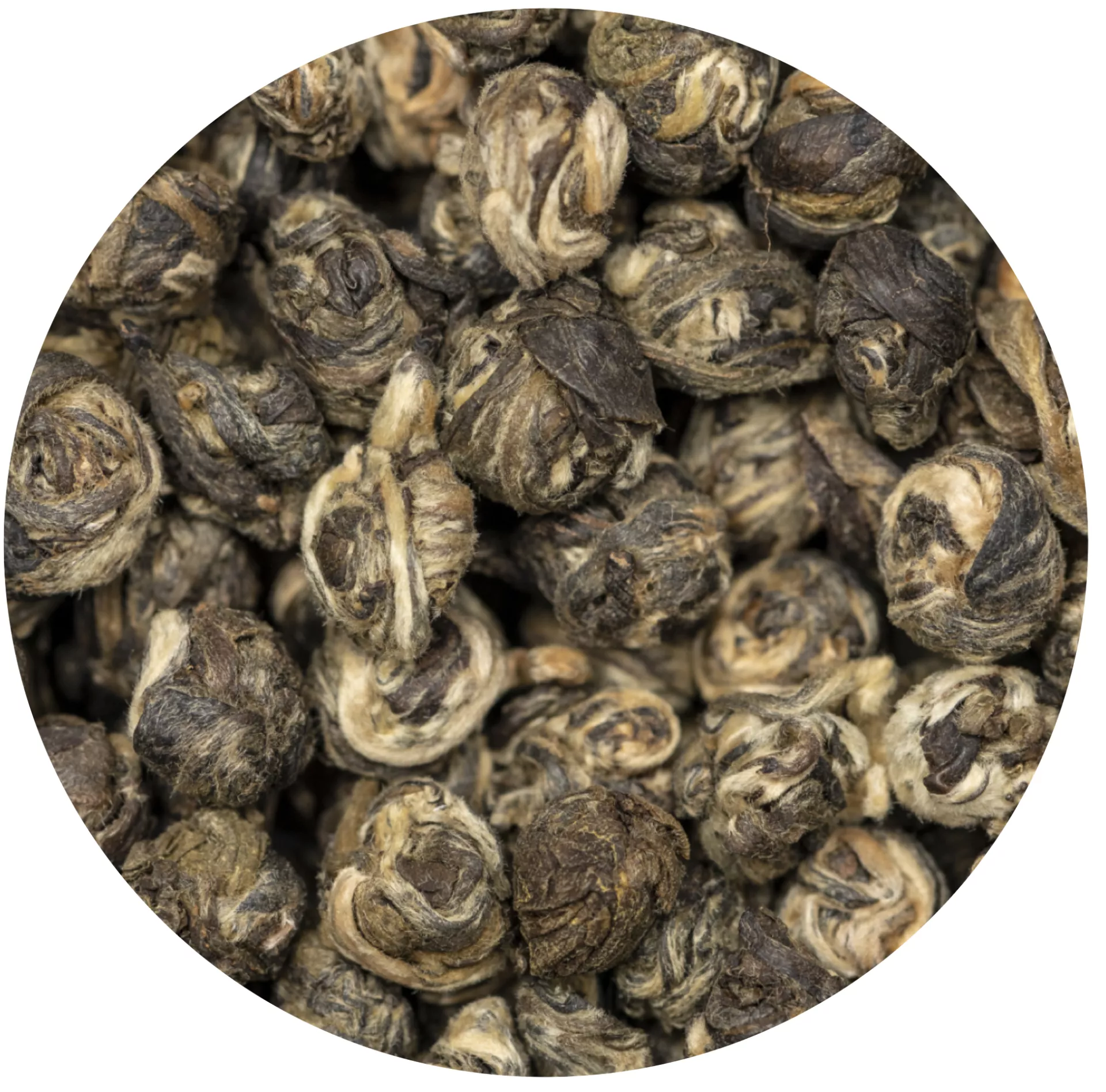 Unser Jasmine Pearls ist ein blumiger Genuss: Wir versetzen die handgepflückten Grüntee-Blätter mit duftenden Jasminblüten und rollen sie per Hand zu kleinen Perlen – ein Erlebnis für alle Sinne!