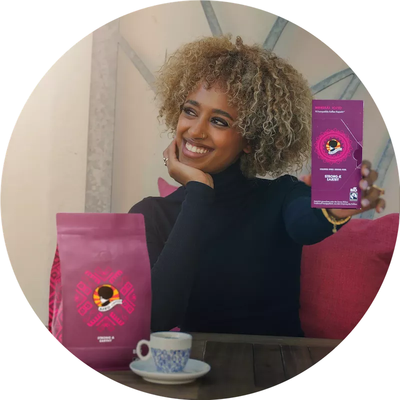 Die verspielten Ornamente unserer Afro Coffee Verpackungen wurden von der äthiopischen Künstlerin Zion Yaynu entworfen, die sich dabei von den traditionellen Mustern ihrer Heimatregion Oromia inspirieren ließ.
