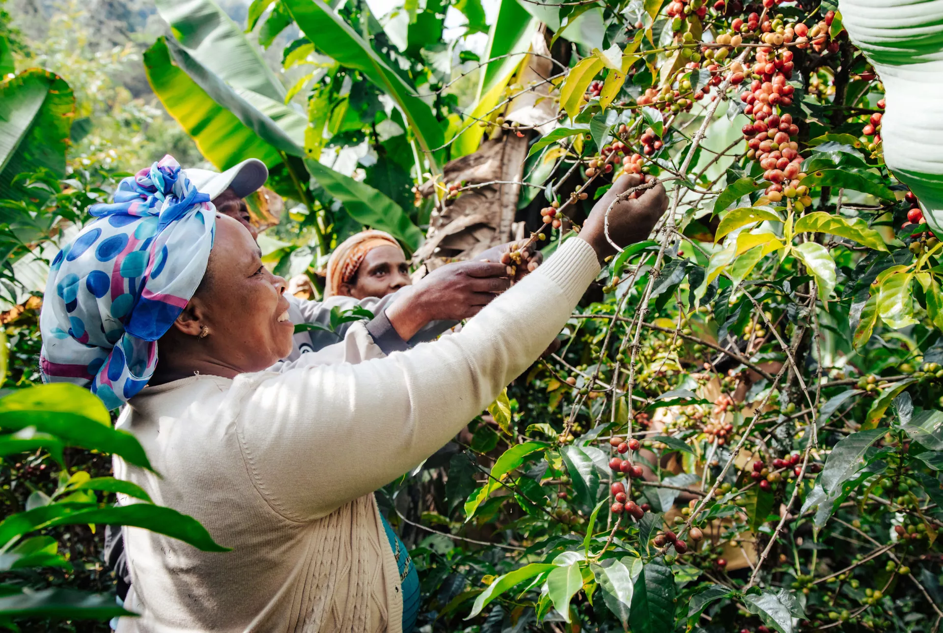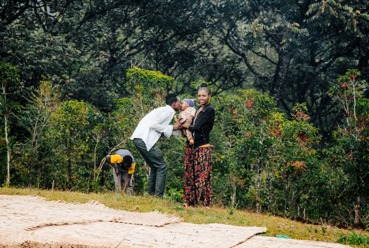 Der Kaffeeanbau beginnt mit kleinen Setzlingen: Je nach Bedarf werden einer äthiopischen Bauernfamilie fünf bis zehn Kaffee-Setzlinge und natürliches Düngematerial kostengünstig zur Verfügung gestellt, damit sie laufend neue Pflänzchen groß ziehen können. Erst nach drei bis fünf Jahren können von Jungpflanzen die ersten Kaffeekirschen geerntet werden. Die kleinen bäuerlichen Betriebe in Äthiopien arbeiten unabhängig voneinander, aber die Zusammenarbeit in Kooperativen erleichtert ihnen den Alltag wesentlich.